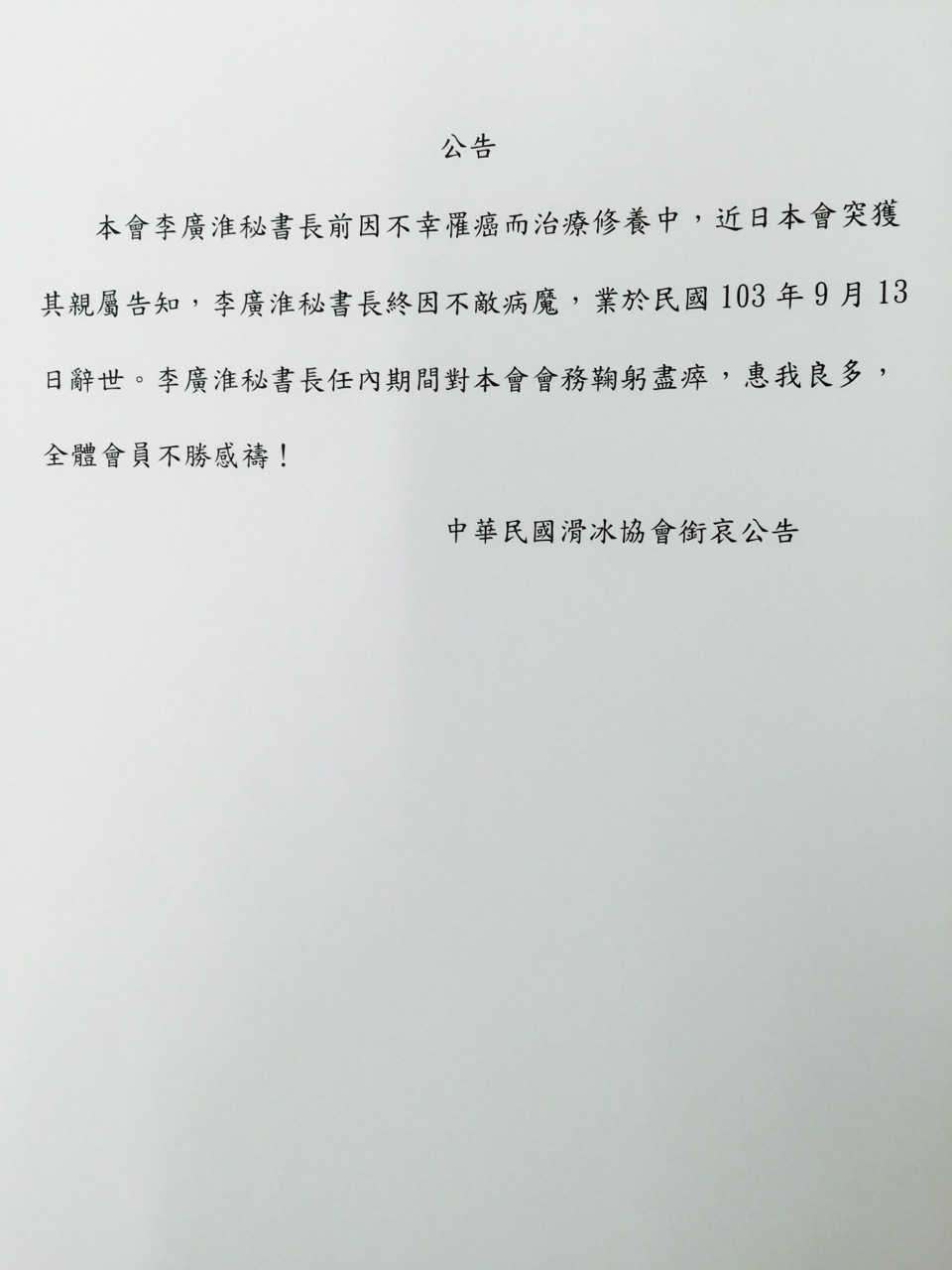 中華民國滑冰協會104年度C級花式滑冰教練講習會測驗結果公布