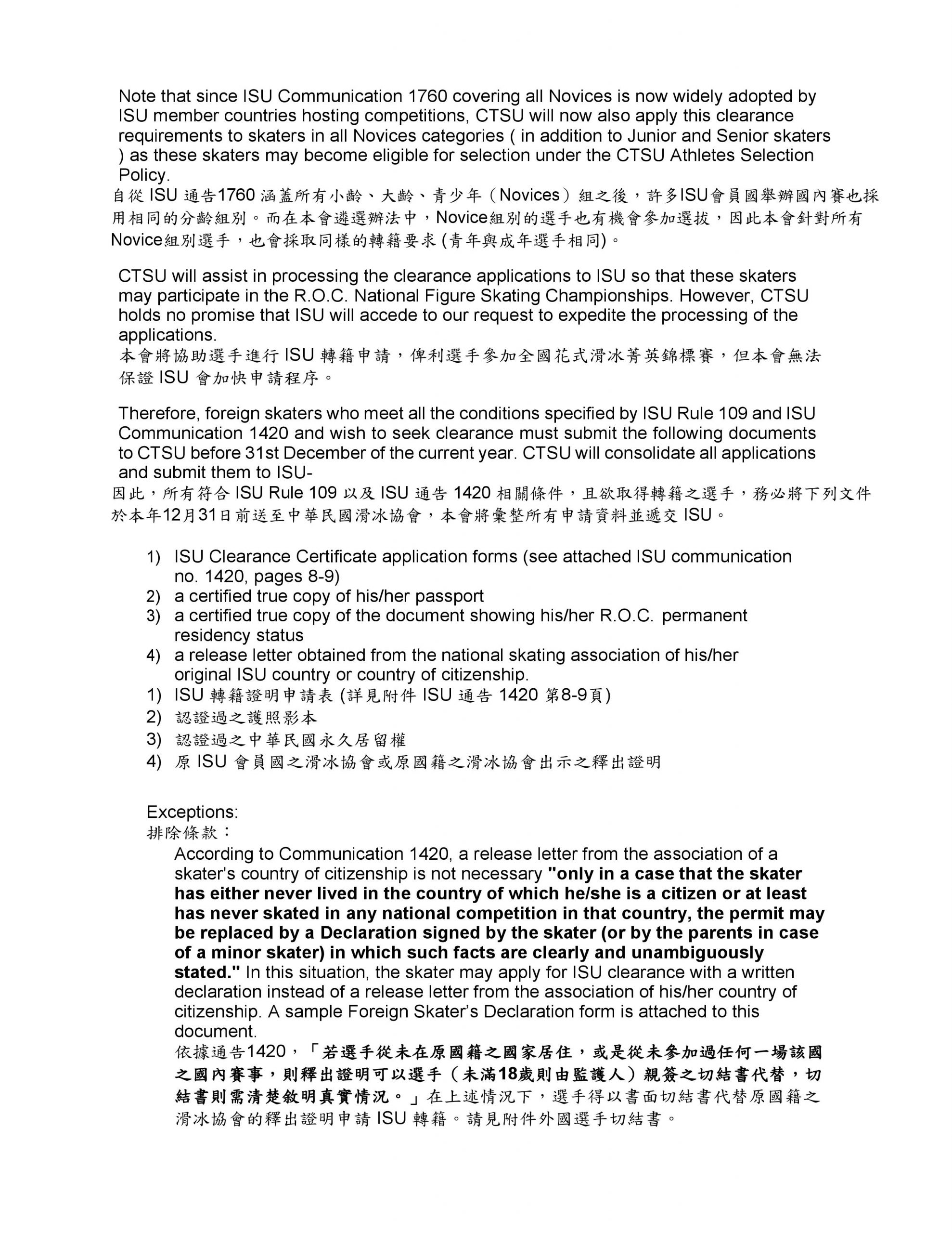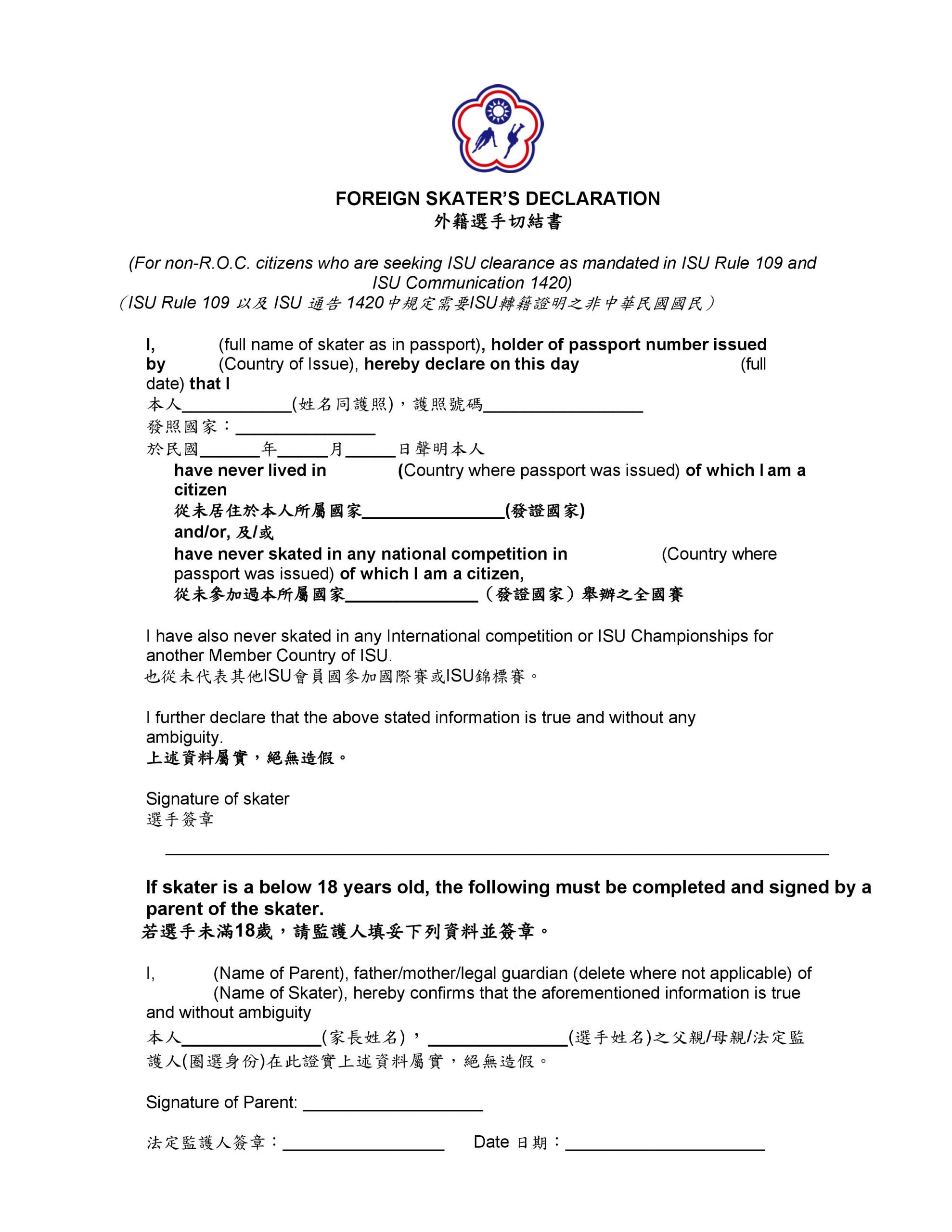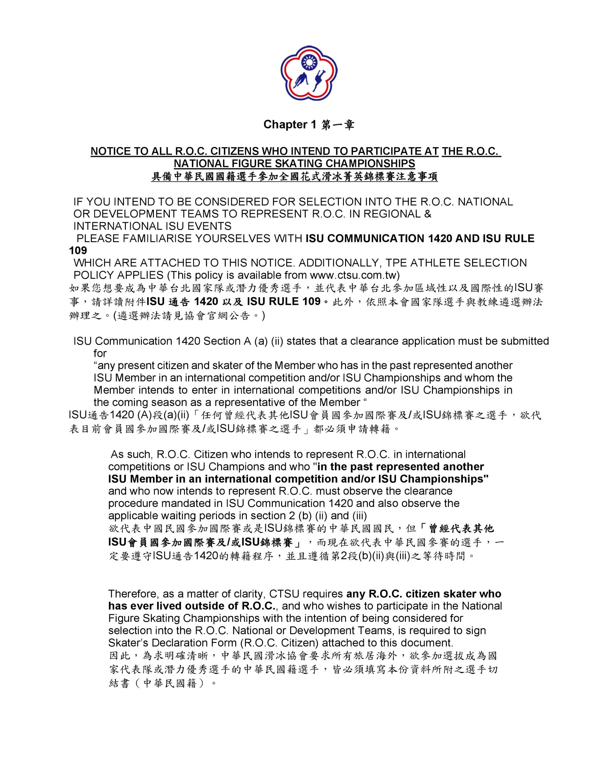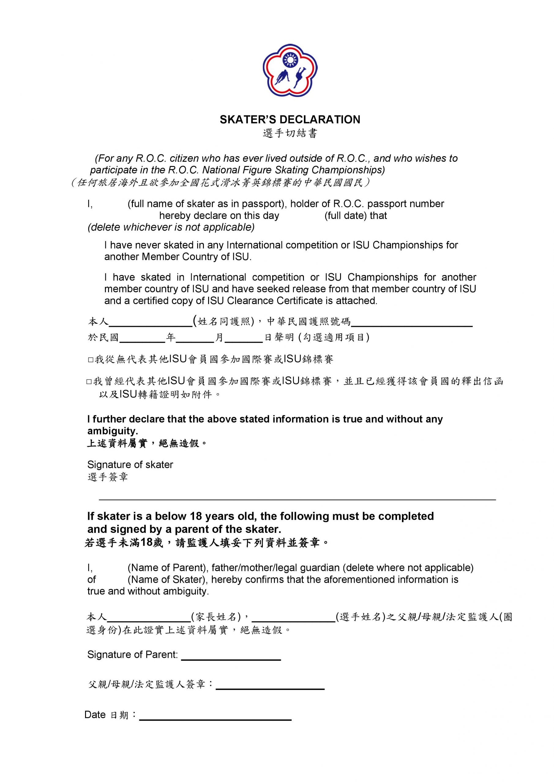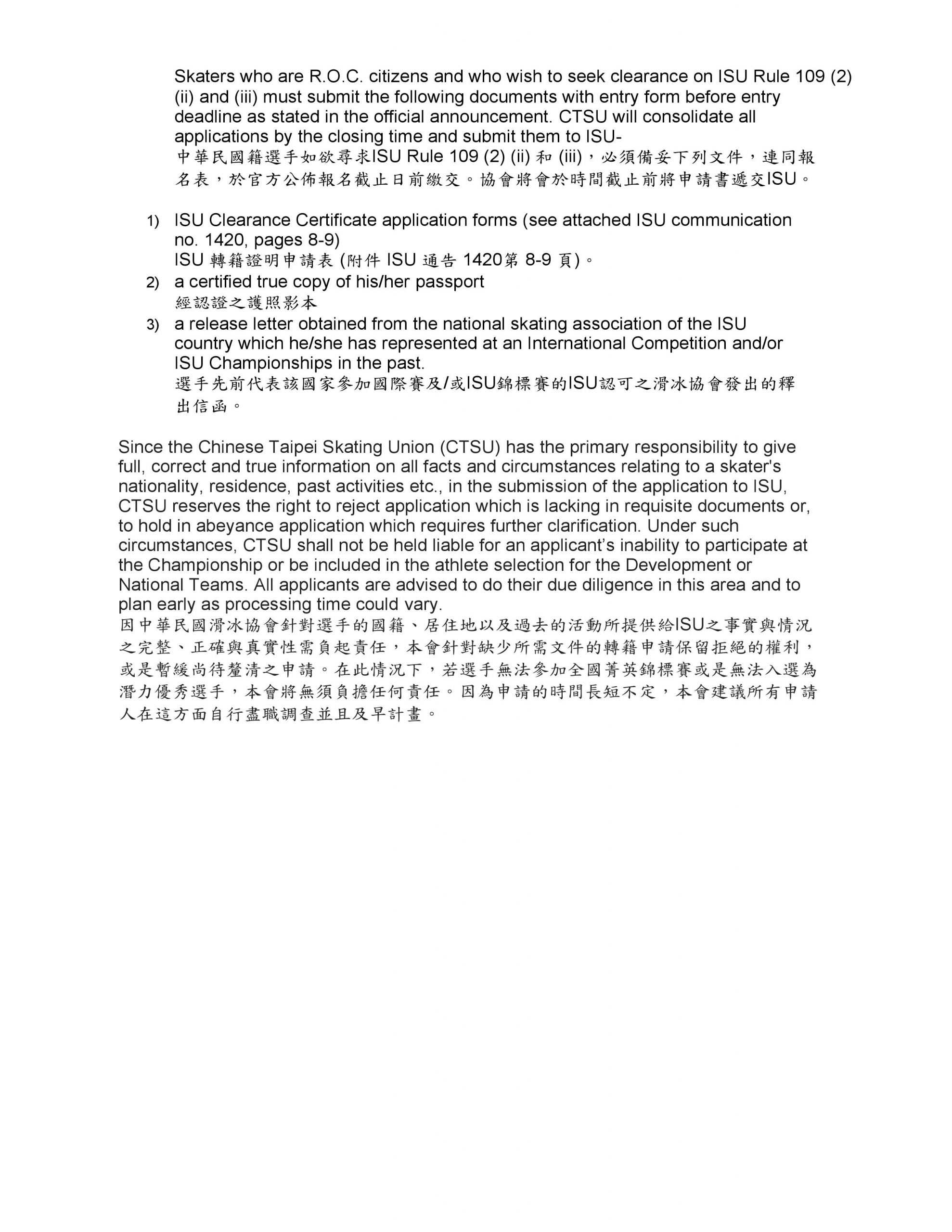 【公告】【花式滑冰】如何成為中華台北代表隊花式滑冰國手How to become a Chinese Taipei Figure Skater 【公告】【花式滑冰】 如何成為中華台北代表隊花式滑冰國手~How to become a Chinese Taipei Figure Skater? 歡迎各路好手加入我們的行列~Welcome to join us! 文件下載 document download: 花式滑冰轉籍台灣代表參賽文件及ISU表格 CT-FS-1CT-FS-2CT-FS-3CT-FS-4CT-FS-5CT-FS-6CT-FS-7CT-FS-8CT-FS-9CT-FS-10CT-FS-11 Previous Article 【公告】賀!2020年洛桑冬季青年奧運會混合接力銀牌獎勵金 Next Article 【公告】【人力招募】 中華民國滑冰協會召募英文行政兼活動組專員