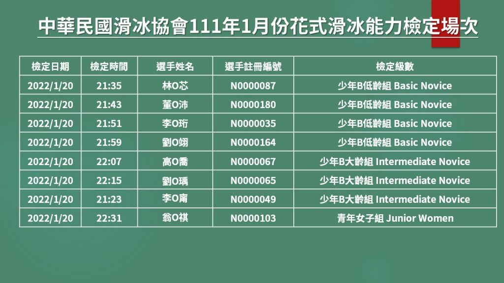 【檢定】花式滑冰能力檢定 – 111年1月份檢定場次公告 Previous Article 111年花式滑冰檢定能力檢定考試辦法 Next Article 【檢定】花式滑冰能力檢定 – 111年1月份場次檢定結果