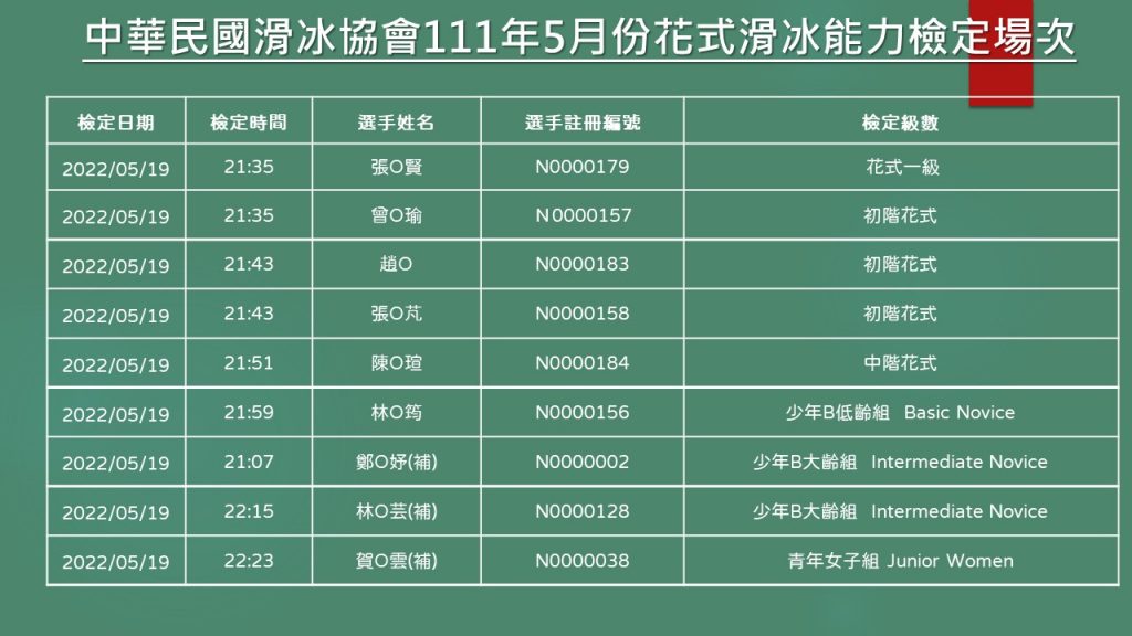 【檢定】花式滑冰能力檢定 –111年5月份檢定場次公告 Previous Article 【會務公告】 中華民國滑冰協會第13屆理事及監事選舉 候選人名冊 Next Article 中華民國滑冰協會第十三屆理事長、理事、監事選舉投開票作業流程