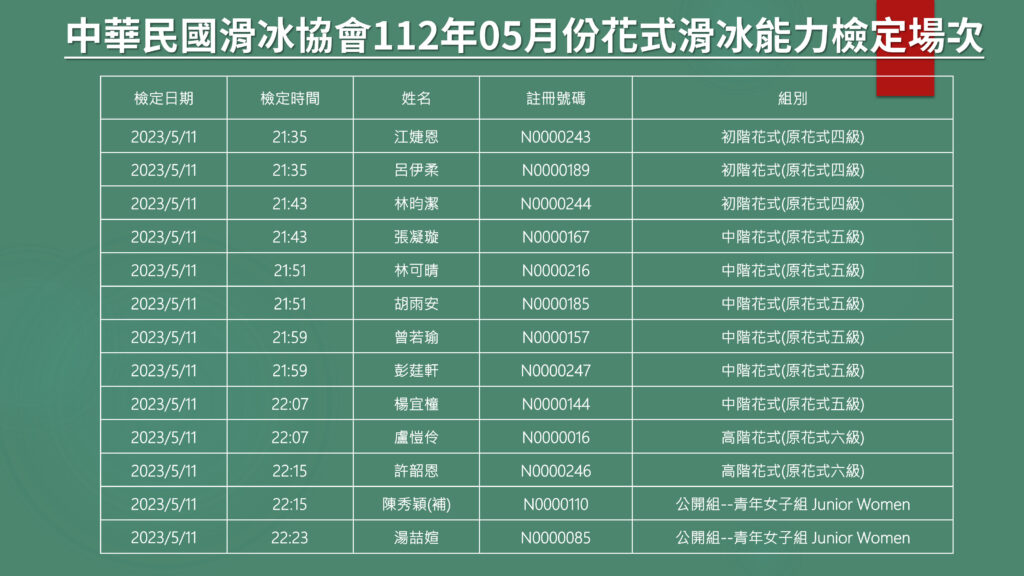 【檢定】花式滑冰能力檢定–112年5月份檢定場次公告 Previous Article 【增能講習公告】中華民國運動總會-112年教練暨裁判增能講進修研習會(第三梯次) Next Article 「2024世界青年花式滑冰錦標賽標誌識別系統設計」案第一次招標公告