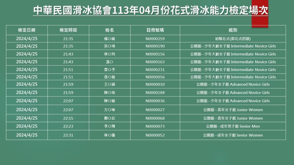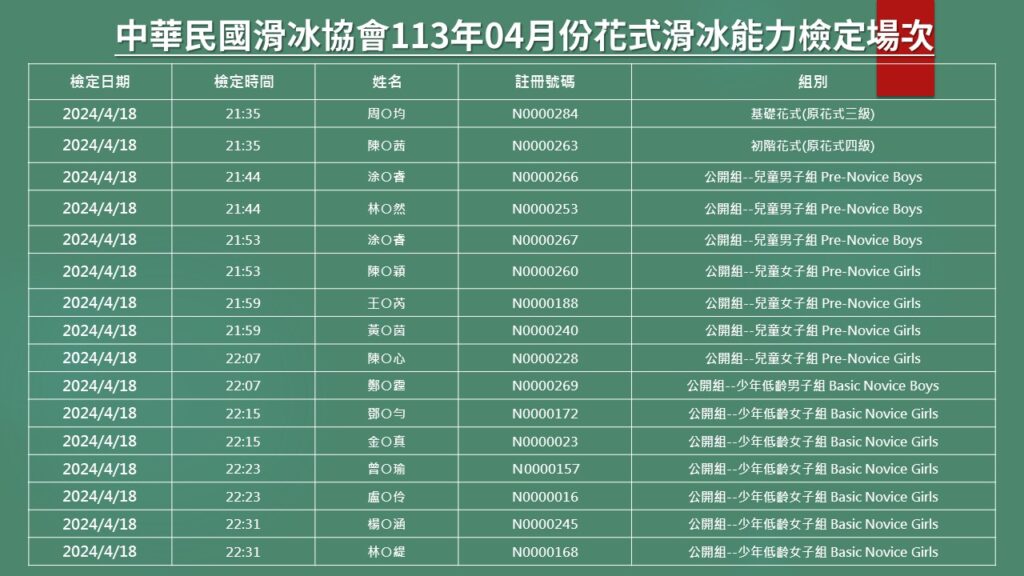 【檢定】花式滑冰能力檢定–113年4月份檢定場次公告-0423Update Previous Article 【檢定公告】113年花式滑冰檢定能力檢定考試辦法 Next Article 【公告】113年度中華民國滑冰協會辦理運動教練(裁判)資格檢定及管理辦法 專業進修課程公告