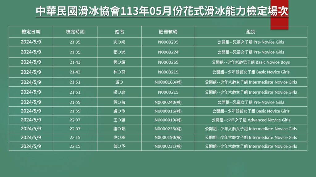 【檢定】花式滑冰能力檢定–113年5月份檢定場次公告-0508更新 Previous Article 【檢定】花式滑冰能力檢定–113年4月份檢定場次成績公告-4/26更新 Next Article 【檢定公告】113年5月份花式滑冰檢定已開放報名