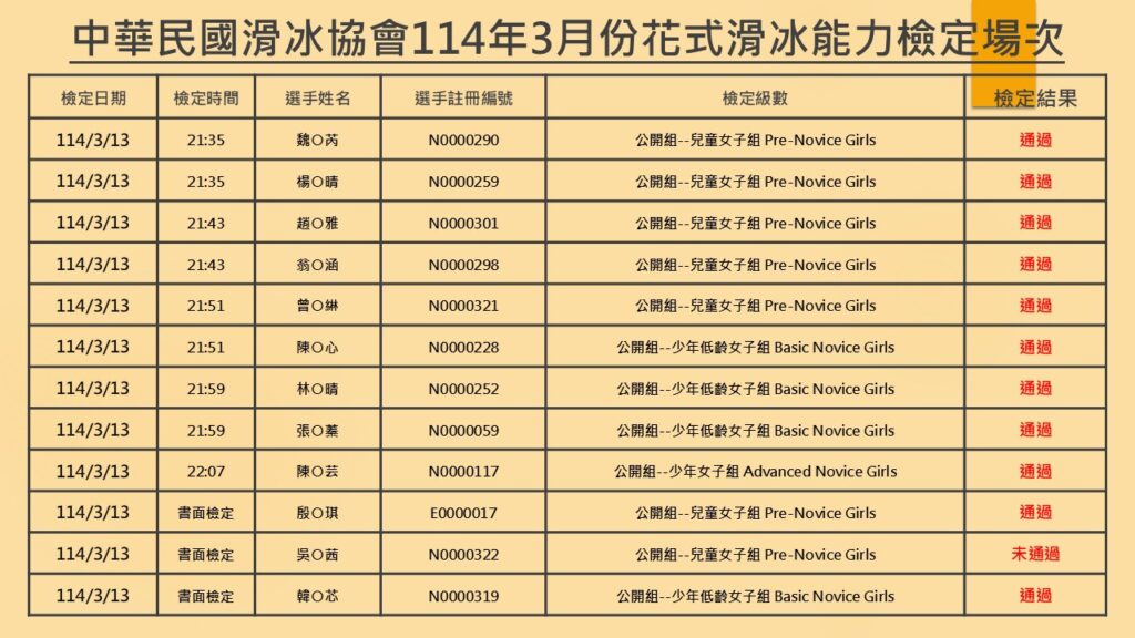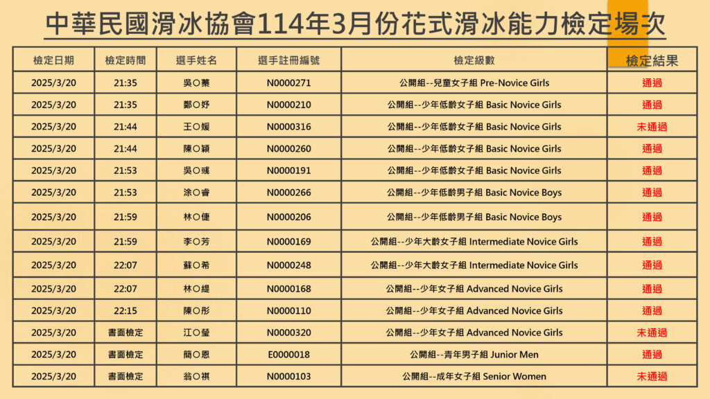 【檢定】花式滑冰能力檢定 – 114年3月份場次檢定結果-update 03/21 Previous Article 【轉知】i運動資訊平台-運動好人才企業動起來 Next Article 【檢定公告】114年3月份花式滑冰檢定補考場次已開放報名
