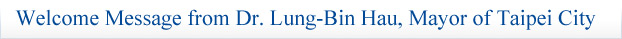 Firstly, as the Mayor of Taipei City and also the Honorary President of the Organizing Committee of the Asian Figure Skating Trophy 2012, I would like to extend my warmest welcome to all the participating teams from the Asian region. My best wish to all Team Leaders, Coaches, Event Officials and skaters to have an outstanding performance and take home with the wonderful memories at the Taipei Annex Arena.